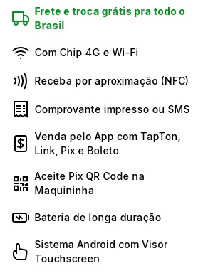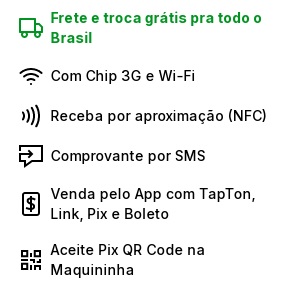 Compre sua maquininha com a segurança de uma garantia estendida/exclusiva que protege seu investimento além do padrão oferecido pela marca. Qualquer problema técnico que surgir será resolvido de maneira prática e rápida, garantindo que você nunca fique sem a ferramenta essencial para suas vendas. Este benefício adicional demonstra nosso compromisso em oferecer não apenas um produto de qualidade, mas também um suporte contínuo e confiável para o seu negócio.